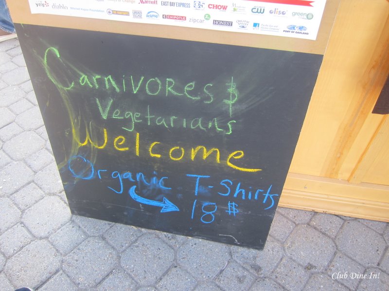 Don’t think that by going Meatless on Mondays is about depriving yourself of good food. There are plenty of vegetarian options available out there, you just have to look. Yesterday, I made my way to Oakland’s Eat Real Festival, held on the beautiful Jack London Square. I was a bit overwhelmed with all of the sustainable food choices available. I recognized Gather/Prather Ranch Meat Co. and made my way over to them and saw this sign: