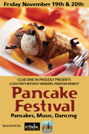 During this season of giving SILA, Club Dine In!, and friends will hold a two day benefit concert titled “San Francisco Pancake Festival” on November 19th and 20th at Coda San Francisco. Proceeds will benefit Doctors Without Borders, Pakistan.