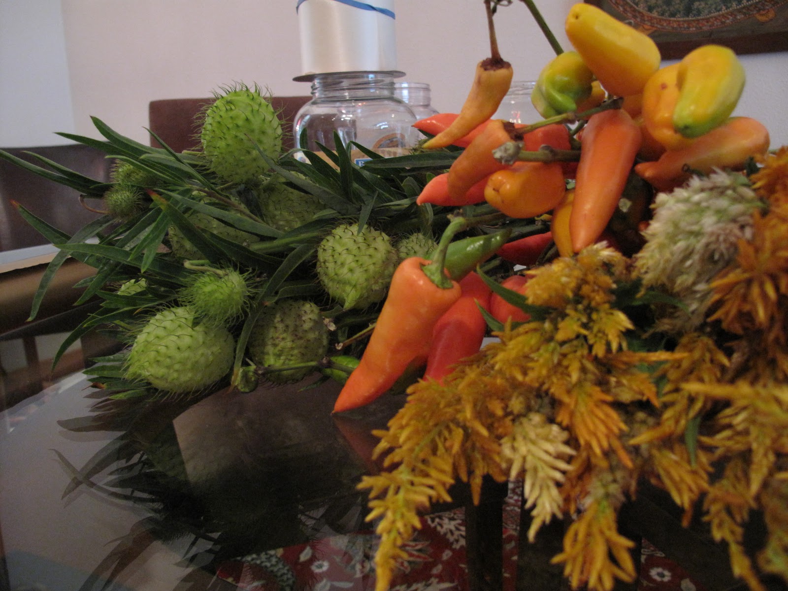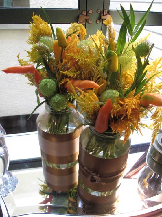 In the place of the Farmer’s Market find, our returning guest blogger- Phantom Floranista will show us how to keep our ambiance warm with $20. Phantom Floranista is a florist and urban landscaper on a passionate floral mission. Each week, she proves that for $20 or less you can create beautiful bouquets that will be the talk of your next dinner party and gifts her arrangements to unsuspecting neighbors. Find out more about Phantom Floranista and her mission here and read about her latest creation below. You can also join her on Facebook.