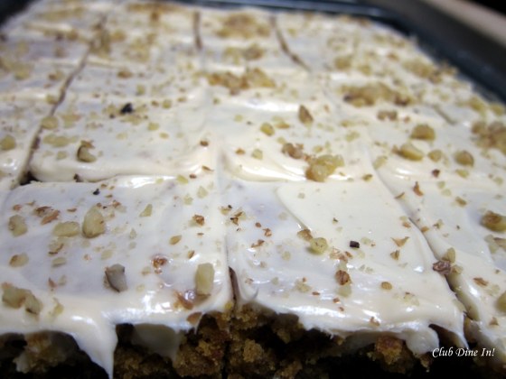 9. When the cake has cooled, spread the frosting over the cake generously using a butter-knife or icing spatula. Sprinkle walnuts over the frosting.