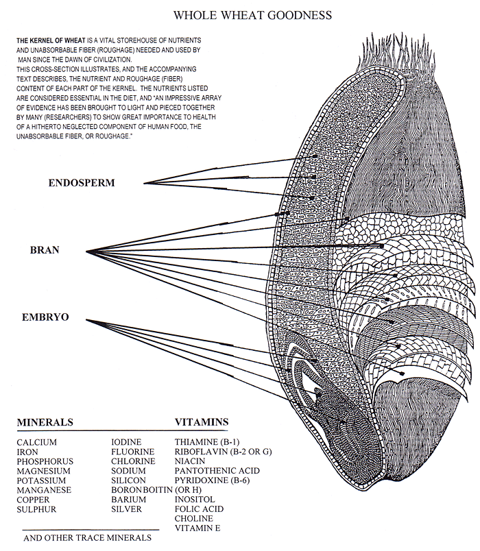 What makes flour refined? Basically, the wheat kernel is processed in such a way that all of the nutrients from the original plant are removed. Flour comes from the wheat plant, which contains an endosperm, germ, bran and husk. The four parts are collectively known as the kernel or wheat berry. The endosperm is the bulk of the edible part of the grain. The germ contains most of the vital nutrients for the plant (which would be given to us if we ate it). The bran is the chief fiber donator of the grain. The husk is the outer, inedible part of the grain. However in the refining process, the germ, bran, and husk are removed, leaving only soft, smooth flour that is stripped of all of the nutrients. Through the Enrichment Act, the FDA requires manufacturers to enrich the processed flour by adding in iron, niacin, thiamin, folate and riboflavin. Though, if you look at the picture below, you will see that the intact kernel contains more nutrients than were added back in to the refined flour.  Also, our body does not recognize the enriched ingredients as well as nutrients from whole foods. Refined flour is a very simple carbohydrate that cause spikes in blood sugar, which spirals to a chain of undesirable reactions in your body. Refined flours are just empty calories that promote weight gain and bad health. Once refined flours enter your bloodstream, it acts like sugar. And we know that sugar is toxic and highly addictive.