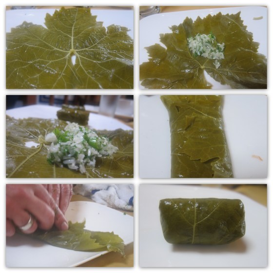 A friend, Carina Ost, made a new year’s resolution to learn how to make dolma and set up a learning session at Mezes Greek Kitchen. Carina invited a few other blogger friends, including myself, to join her. I was really excited about learning how to make dolma from an authentic Greek chef. Dolma are stuffed grape leaves that are often eaten as appetizers/snacks with tzatziki. They remind me very much of Patra, stuffed taro leaves, that my grandmother would painstakingly make for us. It was a long process of soaking and boiling the leaves, making the tamarind dough-like filling, spreading the filling thinly all over the leaves, rolling the leaves up, steaming the rolled leaves, cutting them into slices, stir-frying them in hot oil with mustard seeds, then finally garnishing the Patra with fresh cilantro and shredded coconut. It was an all day project for my mom and grandma, but my grandma was the real expert. We can never get it just right like she used to… I always wish that Patra was the  one traditional Gujarati dish I learned from her.