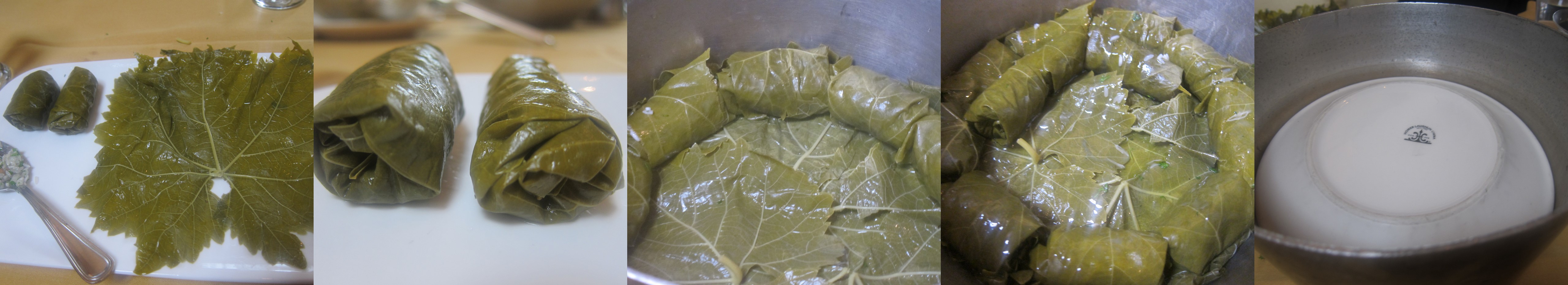 5.       Cook on a medium heat until it starts to boil, then turn down heat so that it continues to simmer for approximately 1 to 1 ½ hours. Check pot occasionally to make sure that there is enough liquid covering the leaves at all times. If the liquid becomes low during cooking just add enough water to cover the top layer. They are done when the rice is fully cooked. Cool in the pot before serving.