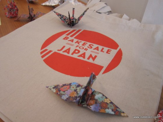 It was really fun spending the evening baking. I opened a bottle of wine, that I randomly picked up from Whole Foods for $10, which turned out to be excellent. So with a glass of vino rojo in one hand and whisk in the other, I was baking away. Also, I would intermittently go on Twitter and follow the hashtag #bakesale4japan to chat with other bloggers who were doing the same thing I was (but probably without the bottle of wine). I felt like I was apart of something really BIG. A few weeks ago, I felt so small and helpless when I was following the Twitter stream during the earthquakes and Fukushima meltdown. Though, after seven dozen cookies had cooled and seeing a tweet about someone’s cute packaging, I went into panic mode. I hadn’t even thought about the packaging! Normally, I am on top of these things and have been coined the name Martha Stewart amongst my friends, but with all that has been going on, I just forgot about cute labels and packaging. And, I hate a missing an opportunity for DIY creative packaging. Then, the creative side kicked in, and managed to come up with something really unique and chic. I used leftover silk favor bags from my wedding to put the cookies in and used my adorable Moo business cards for the labeling. I didn’t even make the connection until I saw a few Japanese people really enamored by my cookies (err packaging). The silk bags were red and had gold flowers on them that looked like cherry blossoms. In the end, it always works out.