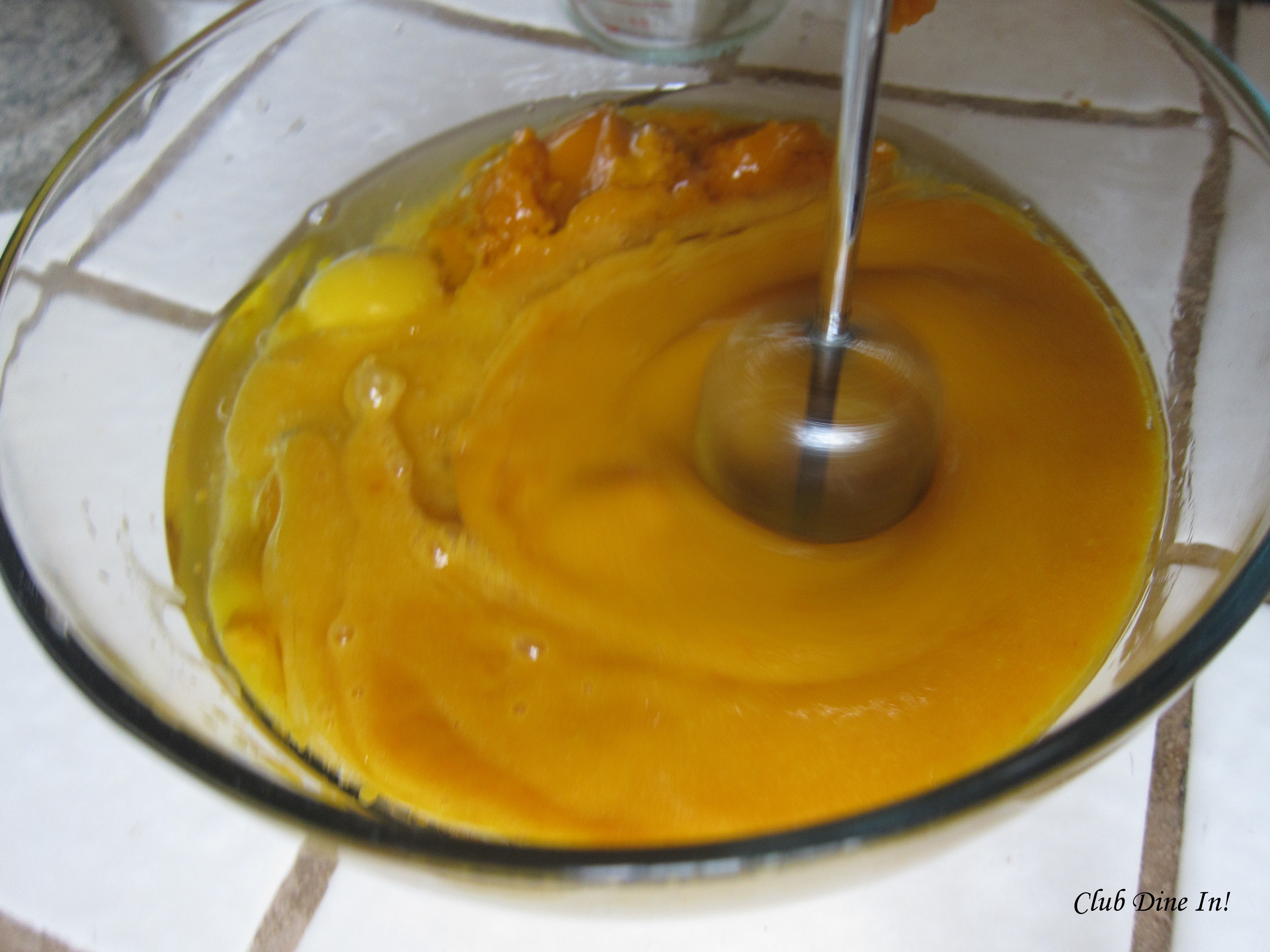 4. Pour flour mixture into pumpkin mixture slowly and mix until incorporated and smooth.