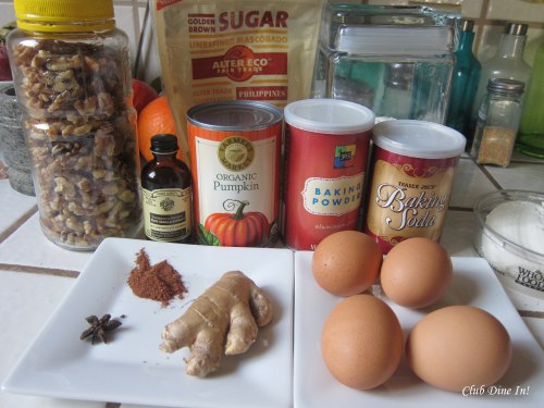 I am not much of a baker (of desserts, that is), even though I have the biggest sweet tooth. Though, for the holidays I do like to bake batches of simple pumpkin pie and give it out to friends and family. It’s my hostess present. Since I have been a little more adventurous in the kitchen, I wanted to try baking something pumpkiny other than a pie. I decided to give this recipe a try, which was inspired by Paula Deen’s recipe. At the second time making it, I tweaked it to make it a little more spicy. I had never made my own frosting before, but after making this really, really simple cream cheese frosting, I was hooked! It’s tough to find unprocessed cream cheese at the regular grocery store, so I bought it from Whole Foods. I used all organic ingredients, except for the sugar, canola oil, baking powder and baking soda.