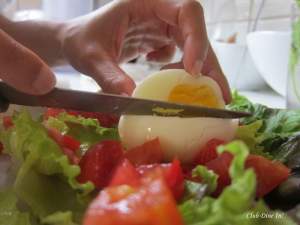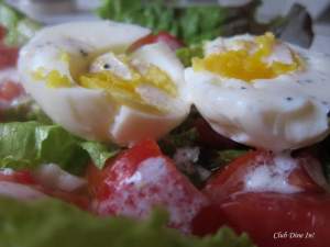 A very simple, bright summer salad that could be eaten as a full meal or on the side. I actually like to eat this salad for breakfast, when I am tired of omelets and cereals. The eggs provide a nice balance of protein, which is important in keeping you satiated for longer time. Eggs also have the most absorbable form of Vitamin B12, which is typically only found in meats.