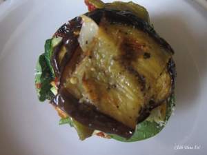 2. Cook the vegetables in a nonstick or cast iron pan for 5-8 minutes, turning once. The vegetables should be tender. Add drops of water to the eggplants as needed, so they do not burn or stick to the pan.