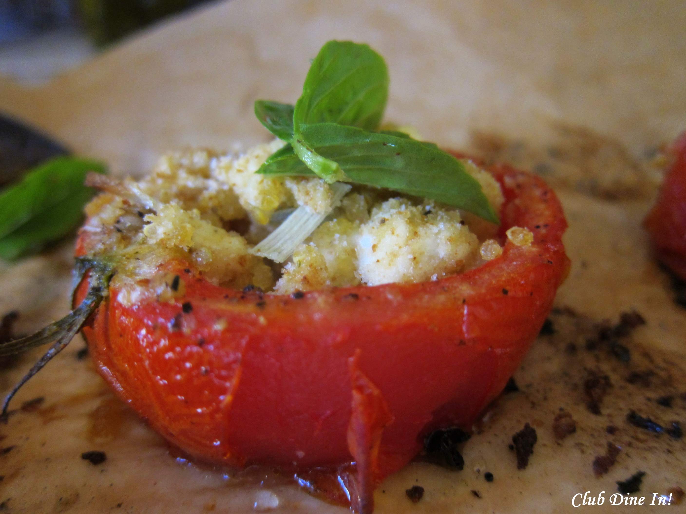 Using a teaspoon, remove the seeds from the tomatoes. You are trying to create enough room to hold the filling. Place the tomato halves, cut side down, on paper towels to drain, about 5 minutes.
