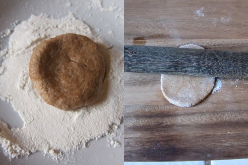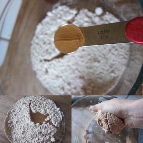 1. In a mixing bowl, mix flour, cinnamon and salt well. Add oil and mix until all lumps are gone. Add water a little at a time, while kneading the flour, to form a soft dough ball. The dough ball should not be sticky or wet. On a plate, place the 1 tablespoon flour for rolling and dusting.