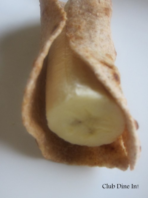 4. Peel the banana(s). Cut the large banana in half. Place it on the edge of one roti and roll it up to eat like a burrito.