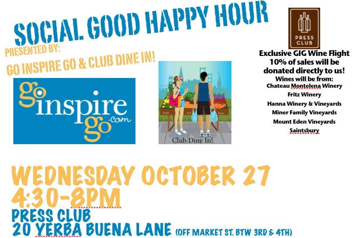 Go Inspire Go and Club Dine In! invite you to a pre-Halloween Social Good Happy Hour. Celebrate the start of the holidays by doing social good, mingling with old friends and making new ones!